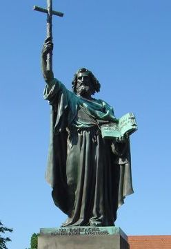 Ultrapassou a 'limes romana' e, nas terras onde o deus pagão Thor era adorado, ao norte de Hesse, derrubou o 'sagrado' carvalho a ele dedicado e aí construiu a primeira capela da cidade de Fritzlar, hoje a catedral de Fritzlar, que então dedicou a São Pedro, fato que é reconhecido como início da cristianização dos germanos. Era a a primeira sede de bispado em Alemanha. Contudo, aí não se demorou: em 724 seguiu para a Turíngia e fundou o Mosteiro de São Miguel, perto da cidade de Gotha. Também fundou mosteiros femininos em Kitzingen, Ochsenfurt e Bischoffsheim, os dois primeiros em terras hoje do sul de Alemanha, e o último, no leste de França.